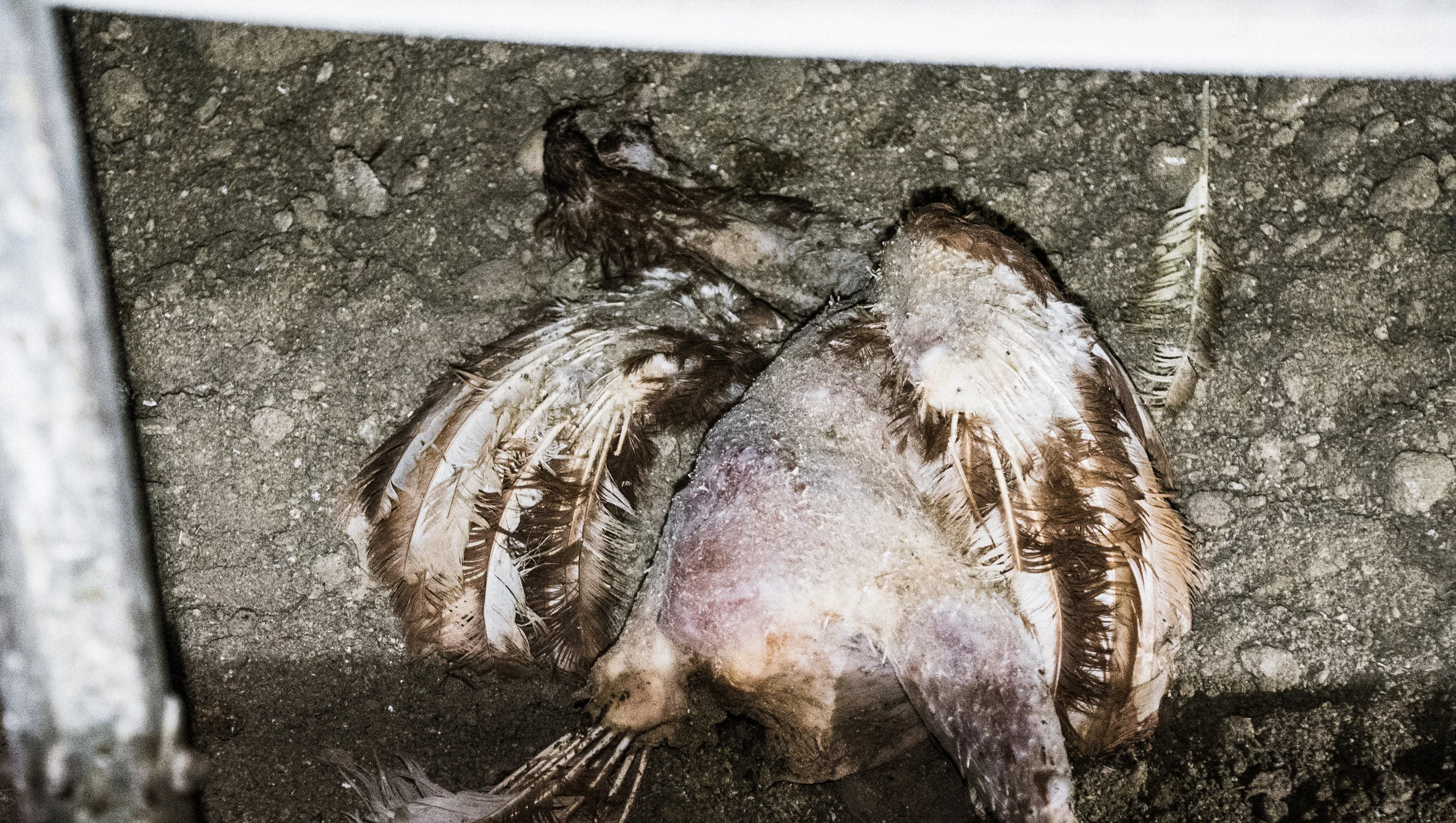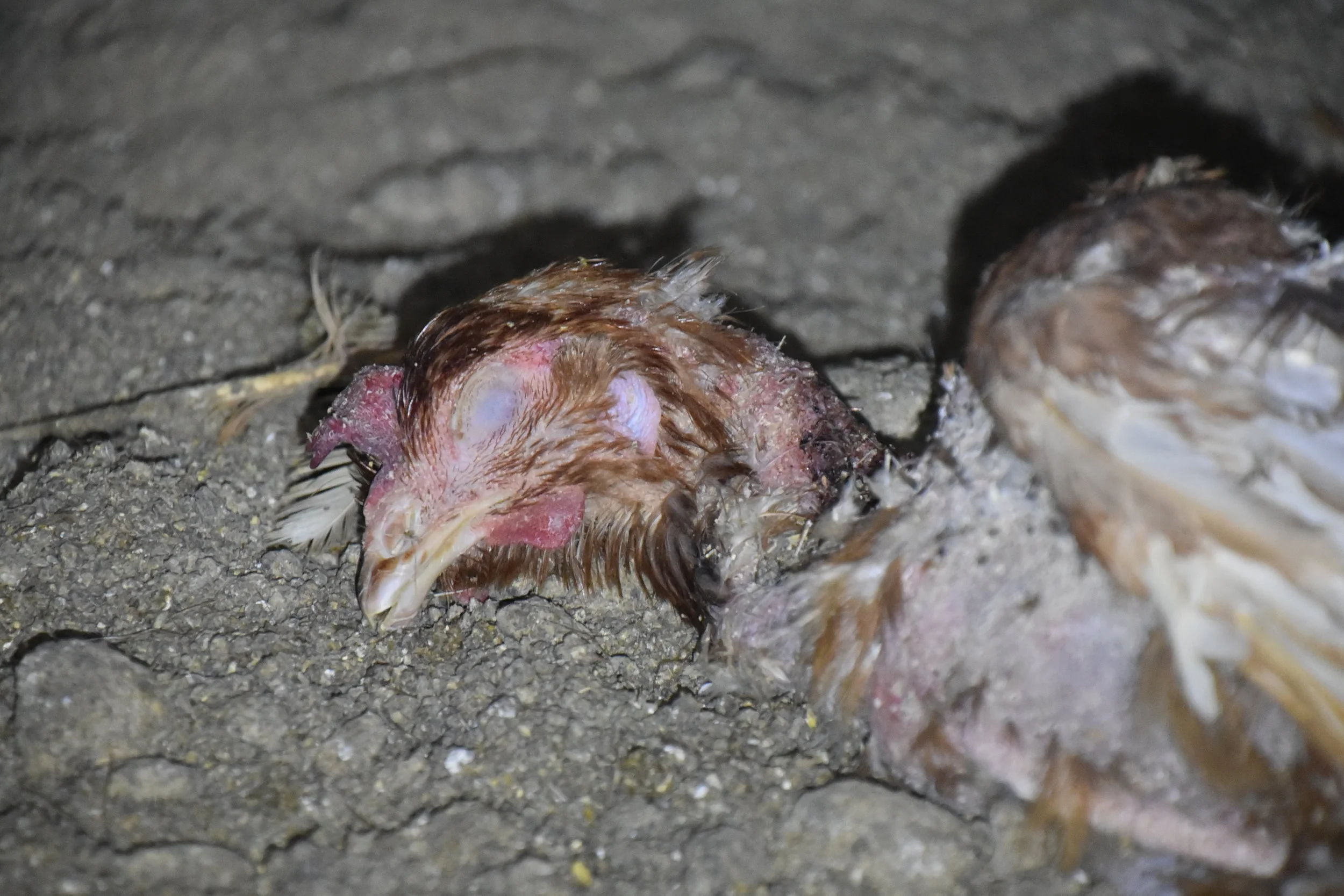 One of many dead birds found among the living at Costco cage-free egg supplier’s farm.