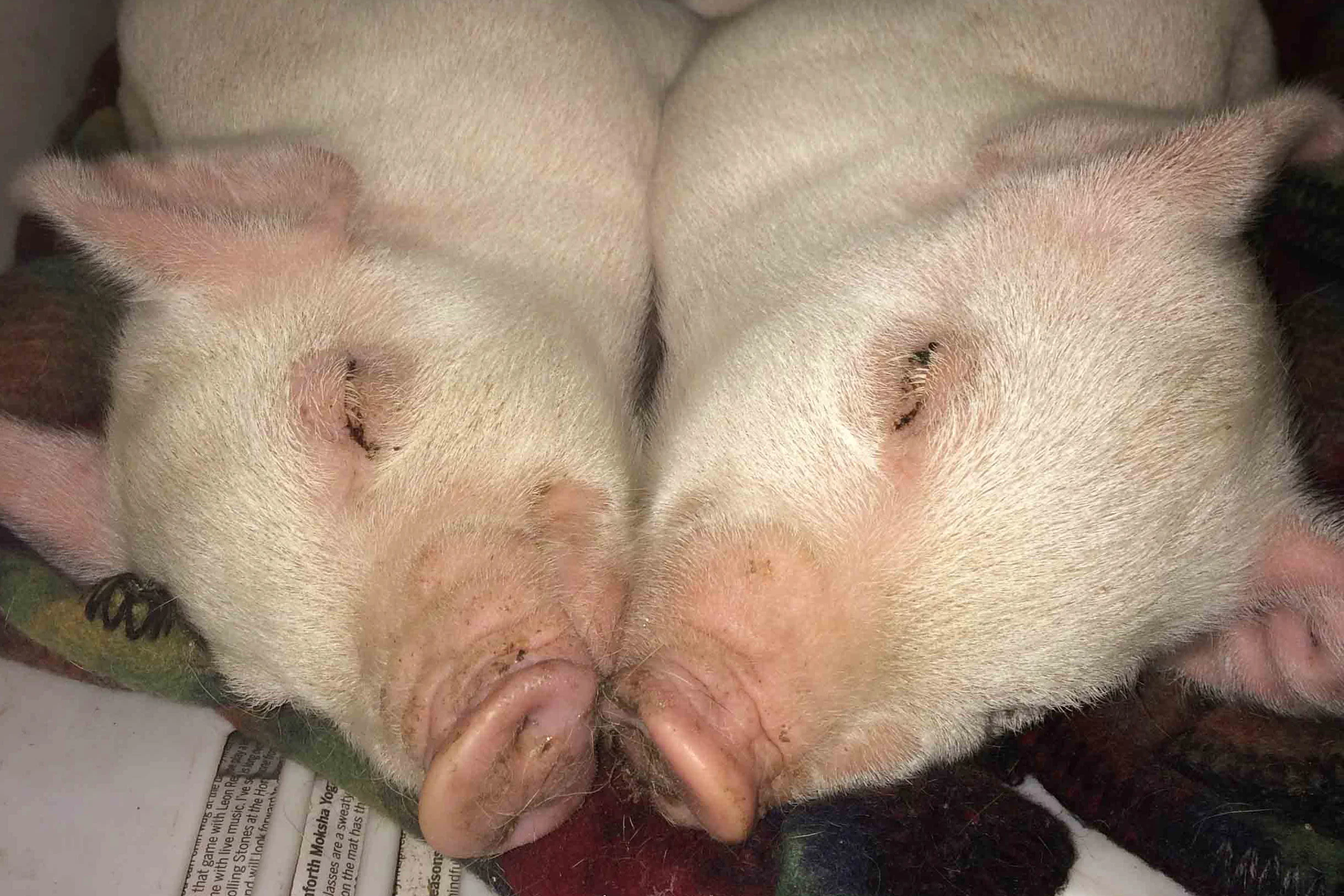 Noel was born on a cold winter night inside an Ontario pig farm. Like all the other piglets, his first experience of the world was a hard, grey farrowing crate where he was separated from his mother by metal bars.