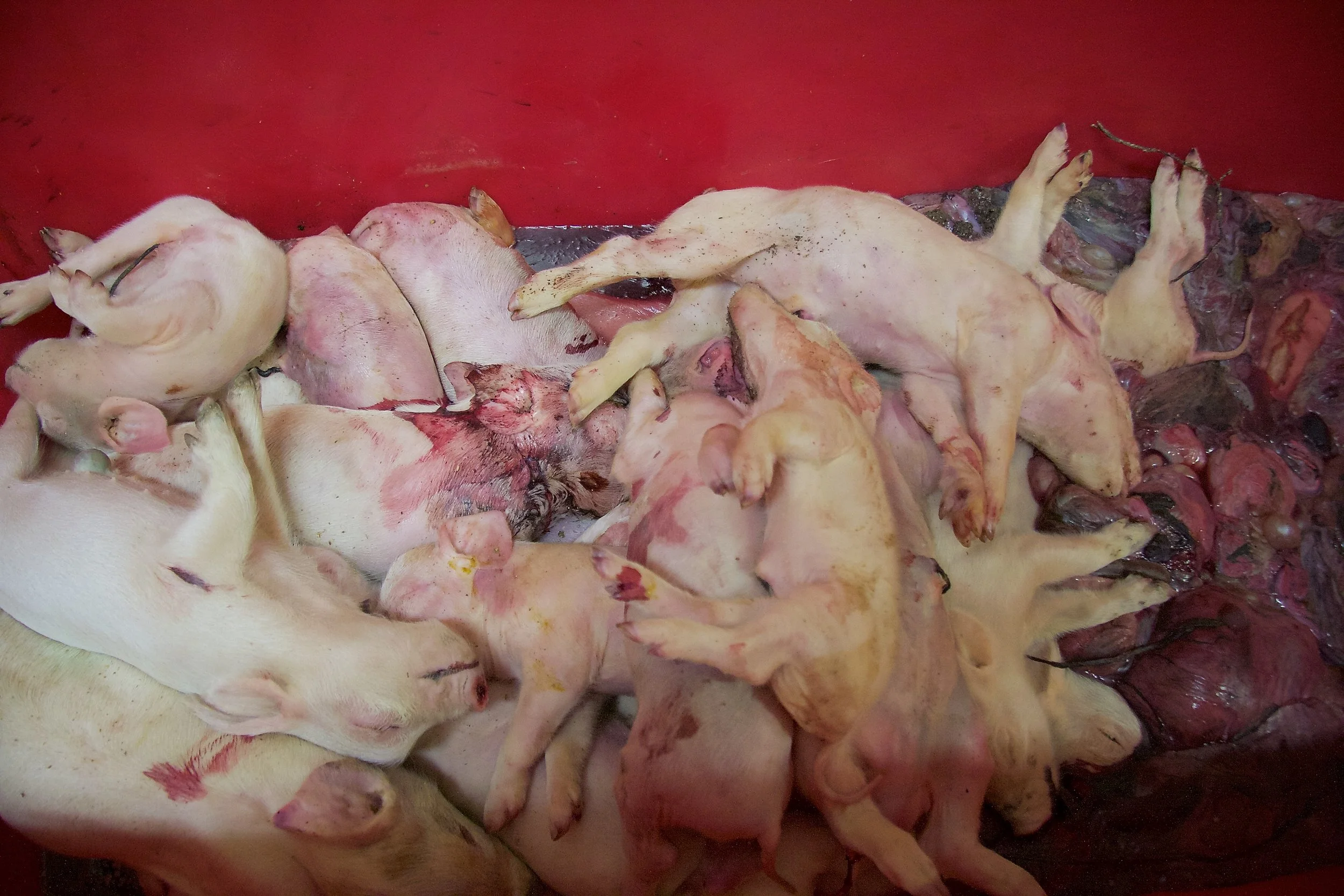 A DxE open rescue team entered a massive North American breeding farm and found dozens of dead and rotting piglets. Mothers were forced to live endless, nightmarish existences in crates as small as their own bodies. Their babies were taken at just 17 days, months before weaning, so their mothers could be forced to give birth again. But Madison was saved.